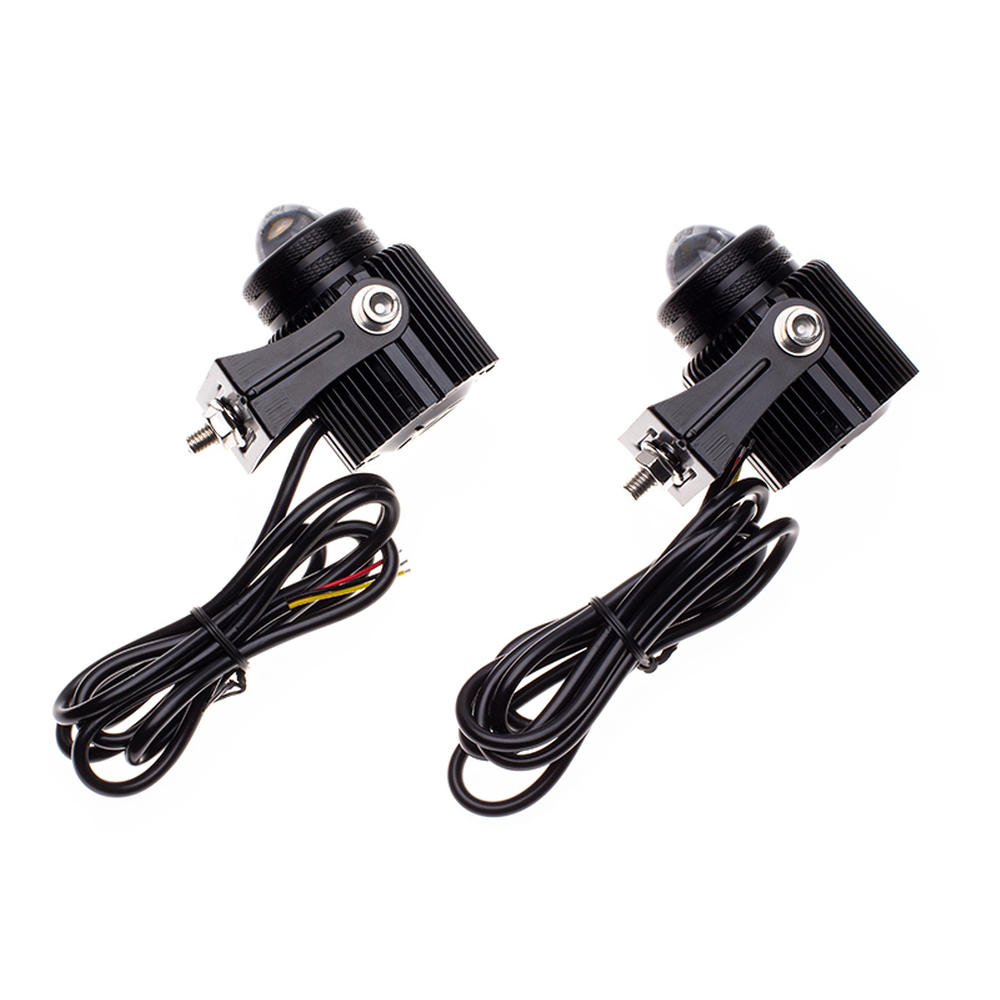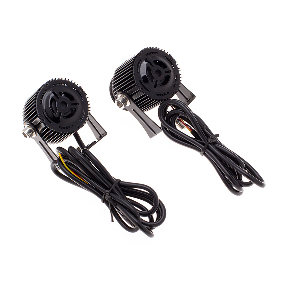 Driving light set combines the functions of Yellow Fog Lights (Low beam) and White Spot Lights (High beam). Cast Aluminum Housing fitted with a 20w LED chip making a total of 40 watts per set. These lights are small and compact but throw out a lot of light. Perfect for Cars, Motorcycles, Buggies, ATVs, Custom Bikes, Side by Sides, etc.